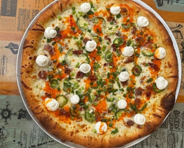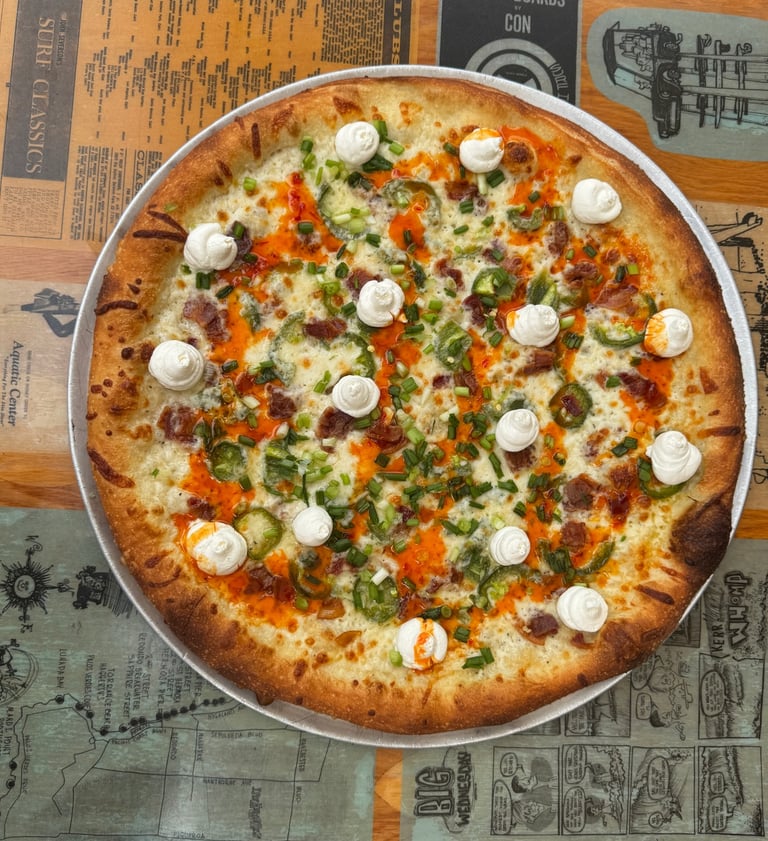 A mouthwatering blend of jalapeños, creamy mozzarella, rich cream cheese, crispy bacon, fresh scallions, and a drizzle of hot honey