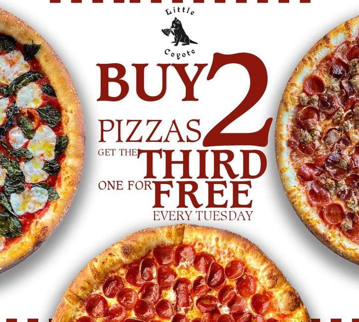 Buy 2 Pizzas, Get the 3rd FREE